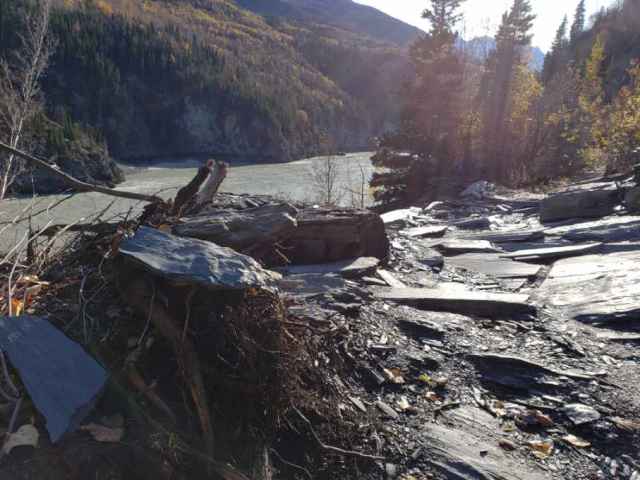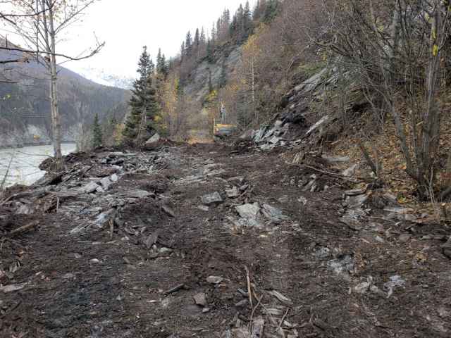 Prior to 2001, DOT would make one springtime trip down the O’Brien Creek road to Haley Creek, clearing the winter’s accumulation boulders and slides. This work was done from DOT’s operating budget. In July 2001, a landslide on the Copper River highway right-of-way blocked the road to Haley Creek about a mile downstream from O’Brien Creek, trapping a number of people. DOT cleared enough of the blockage for the people and vehicles to leave the area, but closed the road. Additional slides blocked the road in subsequent years. The slides were not cleared due to liability concerns and the cost of stabilizing the surrounding lands. Dipnetters hand cleared the road enough to allow ATV access, but, since 2006 there were reports of ATVs rolling off the road and personal injuries of people attempting to use the poorly maintained road. DOT’s budget had seen substantial hits during this period of time, so maintenance of the road was not even on a low priority list of things to fix.